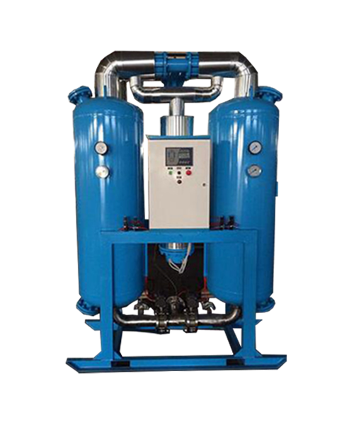 吸附式干燥机运用了化工科技,其原理为将饱和的压缩空气利用水分和空气分子体积之不同采用了气体净化分子筛来过滤除压缩空气中的饱和水蒸汽,可轻易的将水分子吸附在分子筛颗粒内,再利用再生方法来还原分子筛,其压缩空气露点将可轻易达到-40℃。